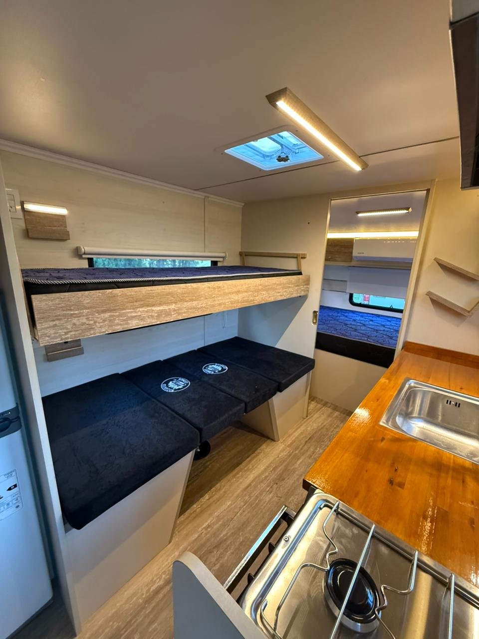 - 2 camas tipo cucheta en comedor (con luces de lectura y toma de 220v en pared)